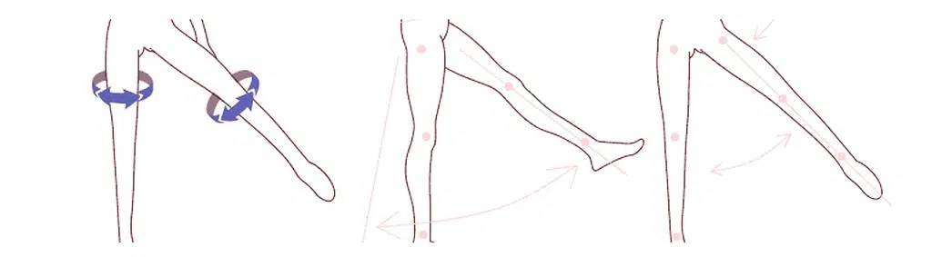Los muslos de las SexDolls pueden separarse a ambos lados hasta un máximo de 130º y para la división de una sola pierna puede aumentarse hasta 100º.
